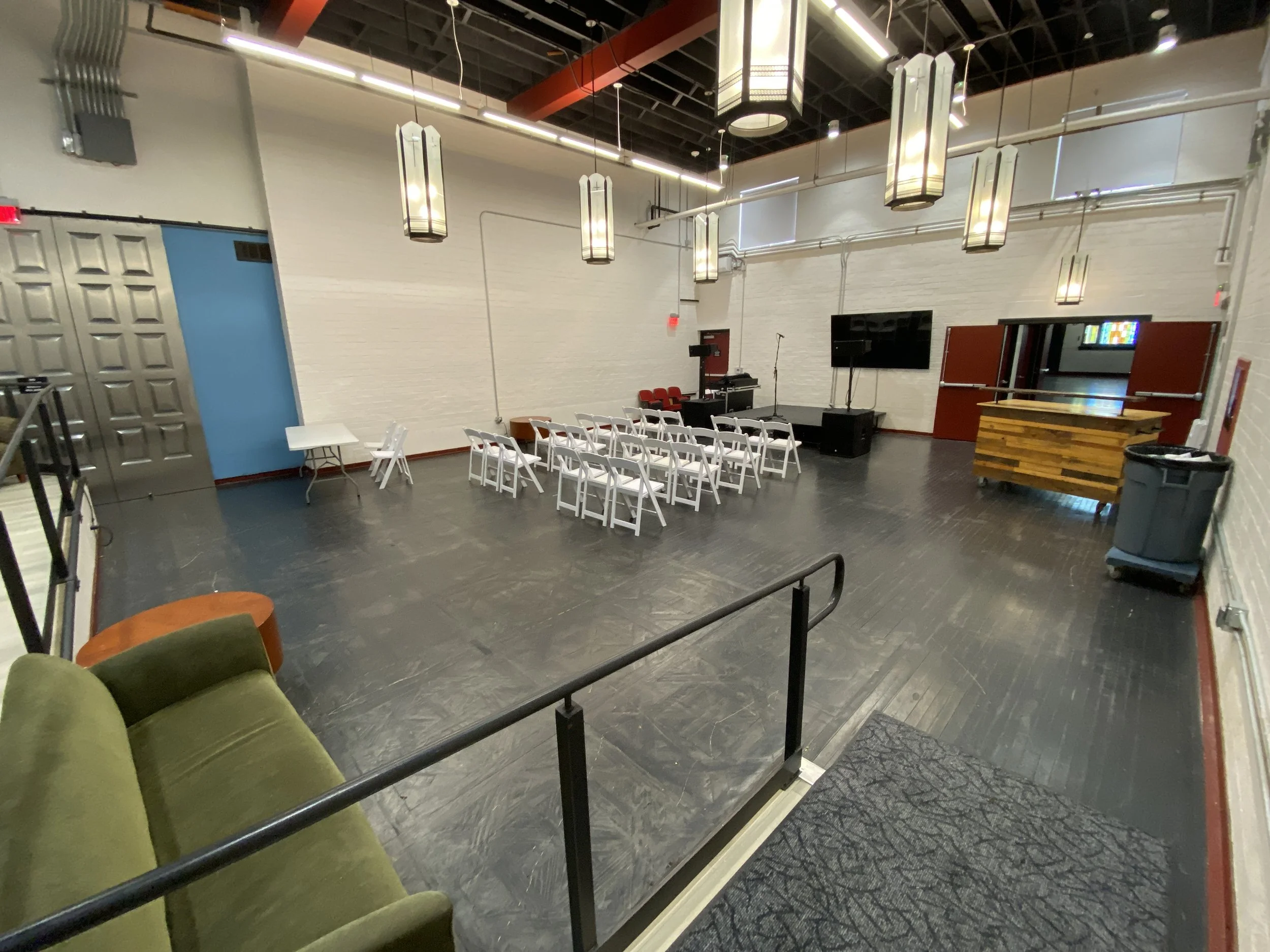 Our MPR space is perfect for smaller events, meetings, and gatherings. It has a capacity of 200 standing, 120 theater, and 50 with tables. It features a large smart tv and dimmable lighting. Starts at $1,500 (nonprofit rates available)